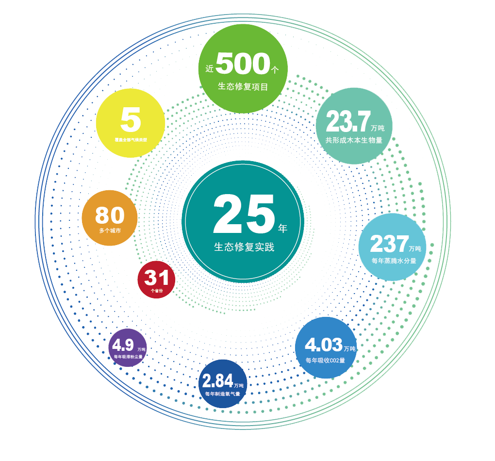 25ÄêµÄÉú̬ÐÞ¸´Êµ¼ù£¬¹²´´Á¢ÁË23.7Íò¶ÖµÄľ±¾ÉúÎïÁ¿£¬ÕâЩÉúÎïÁ¿Ã¿Äê¿ÉÒÔÎüÊÕ¶þÑõ»¯Ì¼4.03Íò¶Ö(Ï൱ÓÚ1473¶Ö±ê׼ú)¡¢ÖÆÔìÑõÆø2.84Íò¶Ö¡¢ÎüÖÍ·Û³¾4.9Íò¶Ö¡¢ÕôÌÚË®·Ö237.04Íò¶Ö¡£
