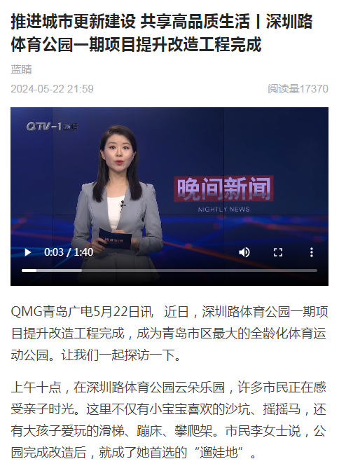 ·ï»ËÍøÇൺ£º¡¶áÀÉ½ÇøÉîÛÚ·ÌåÓý¹«Ô°Ò»ÆÚÌáÉýË¢ÐÂÏîÄ¿Í깤¡·